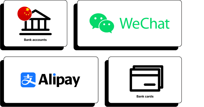 Choose the payment method that works best for your recipient. Send money to Chinese bank accounts, WeChat wallets, Alipay wallets or bank cards.